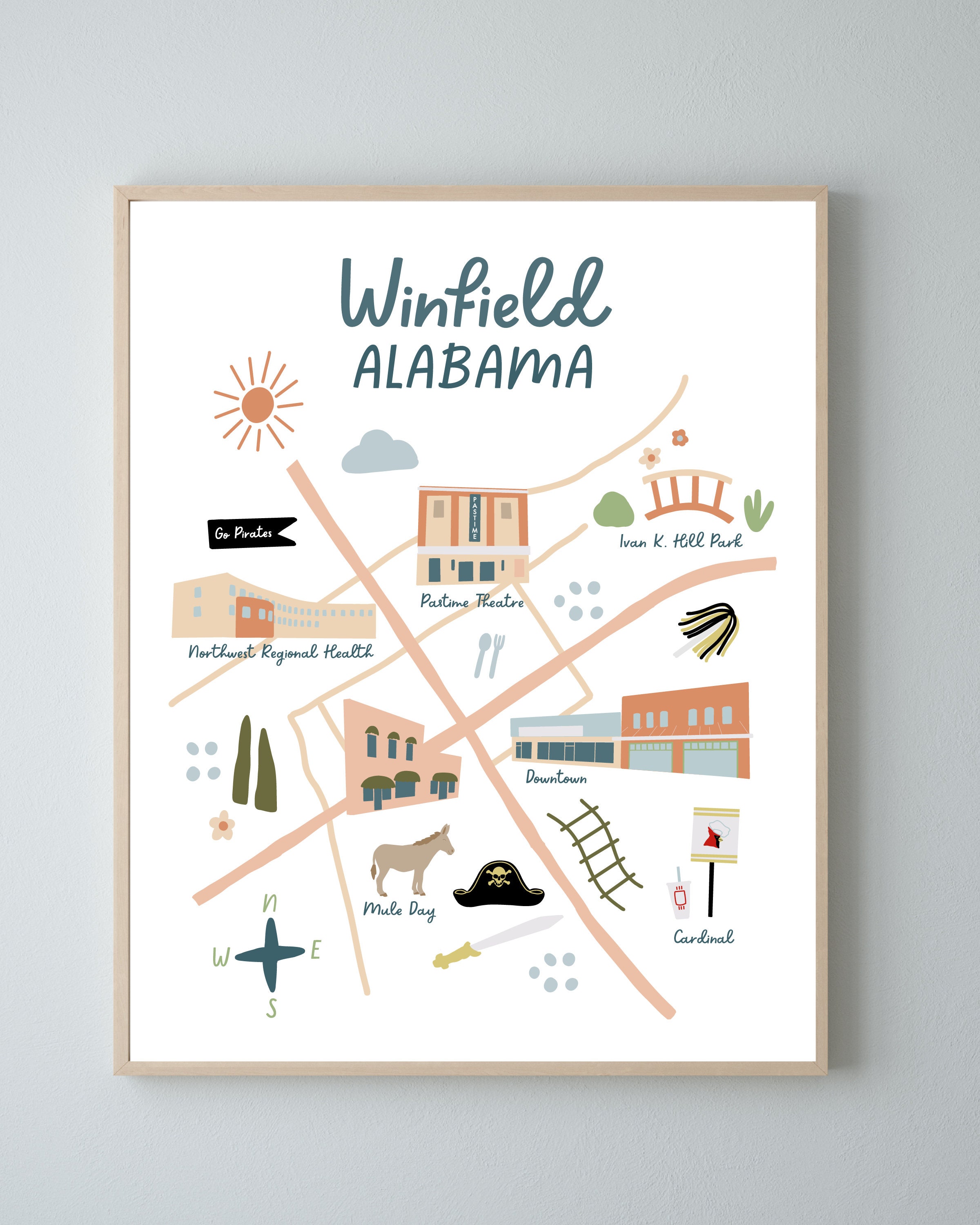 Winfield Alabama Map Print Illustrated City Map Etsy